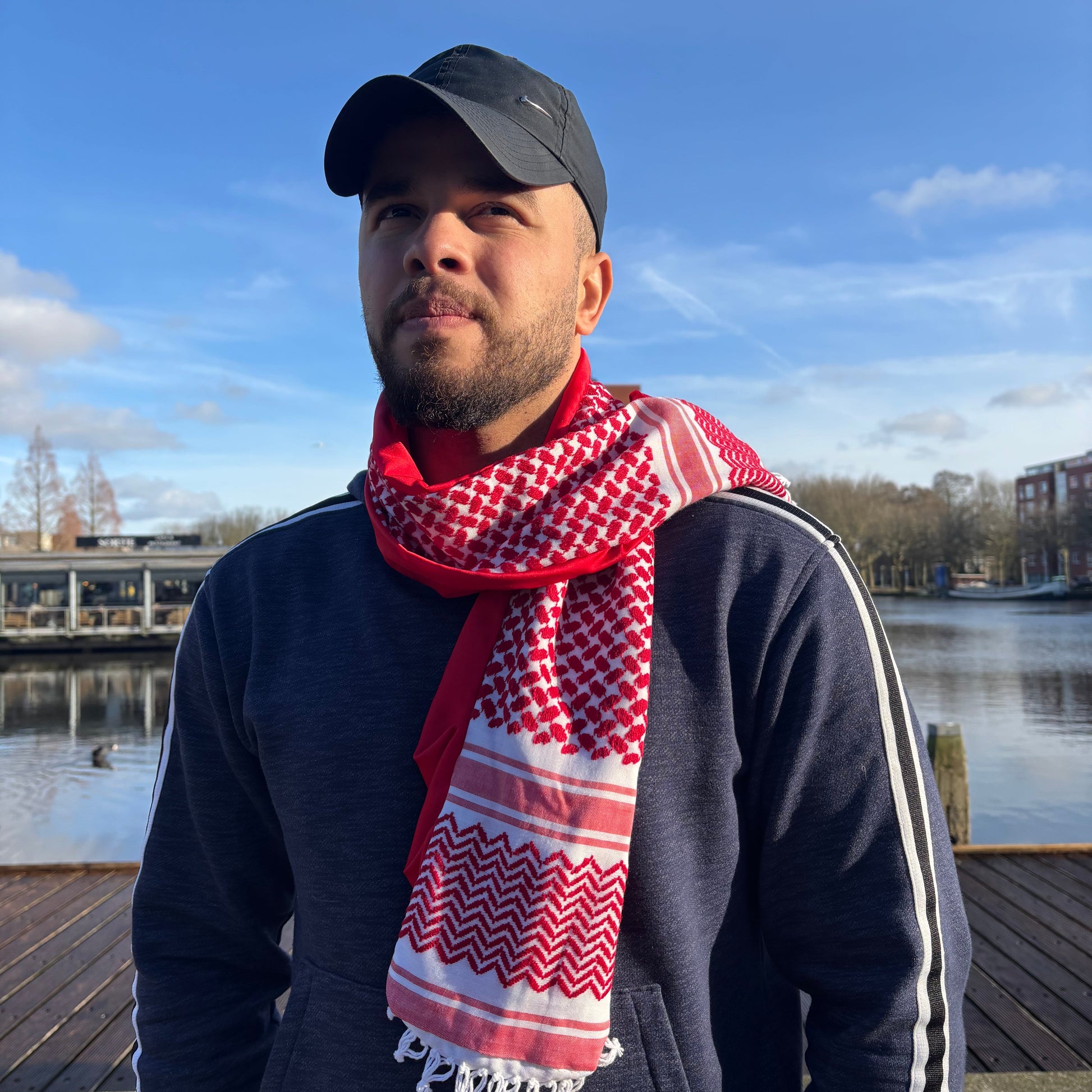 Bold, timeless, and deeply rooted in heritage, the Handmade Crimson Legacy Keffiyeh is a striking interpretation of a cultural icon. Made from buttery soft, bright red keffiyeh fabric, this piece is effortlessly luxurious while staying true to tradition.